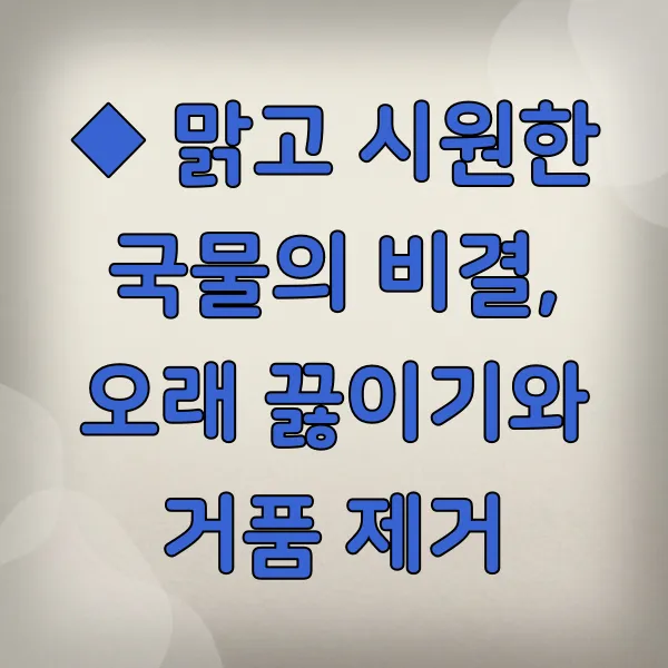 ◆ 맑고 시원한 국물의 비결, 오래 끓이기와 거품 제거