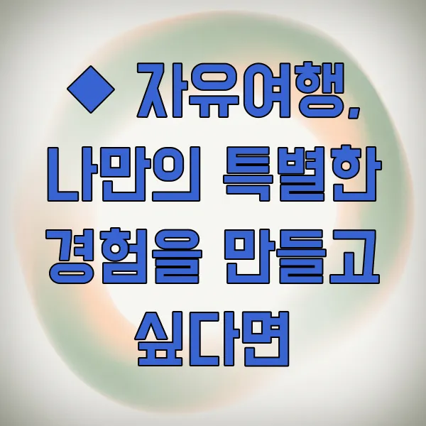 ◆ 자유여행, 나만의 특별한 경험을 만들고 싶다면