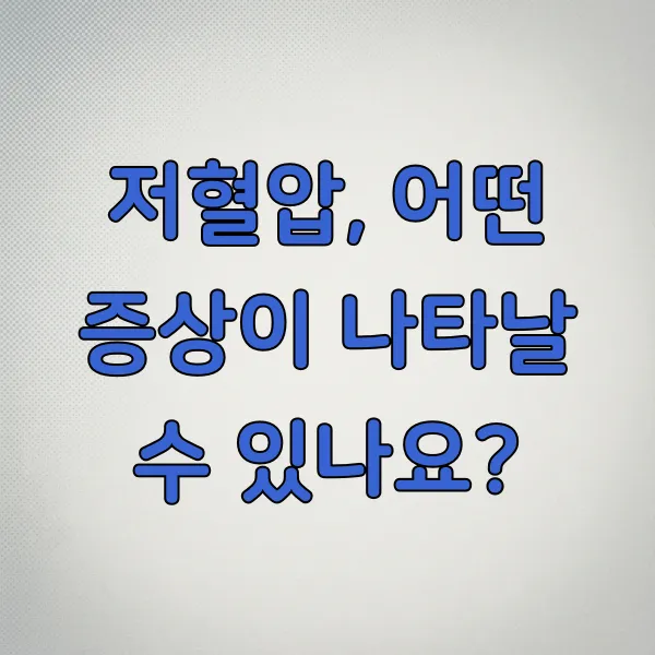 저혈압은 때로는 가볍게 여겨지기도 하지만, 우리 몸이 보내는 중요한 신호일 수 있어요. 다양한 증상과 원인을 정확히 이해하고, 생활 습관 개선과 꾸준한 관리를 통해 건강한 혈압을 유지하는 것이 중요합니다. 혹시라도 걱정되는 증상이 있다면 주저하지 말고 전문가와 상담하시길 바랍니다.