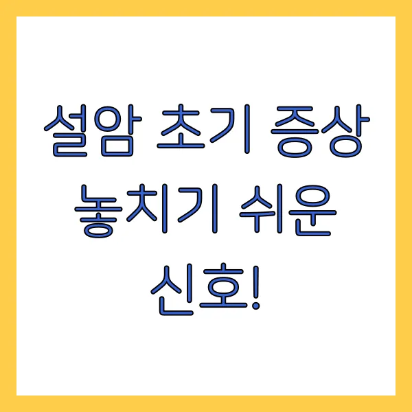 정말 중요한 내용이니, 꼭 머릿속에 새겨두시길 바라요. 설암 초기 증상은 말 그대로 '초기'이기 때문에 발견이 빠를수록 치료 예후가 훨씬 좋답니다. * 2주 이상 지속되는 혀의 통증이나 궤양 : 단순한 구내염이 아닐 수 있어요! * 혀나 볼 안쪽, 잇몸 등에 만져지는 딱딱한 덩어리 : 통증 유무와 상관없이 꼭 검진받으세요. * 혀의 색깔 변화 (붉거나 흰 반점 등) 또는 부기 : 평소와 다른 점은 주의 깊게 살피세요. * 음식물을 삼키거나 말할 때 느껴지는 불편함 : 혀의 움직임에 문제가 생긴 신호일 수 있습니다. * 원인을 알 수 없는 입안의 출혈 : 조심해야 할 증상입니다.