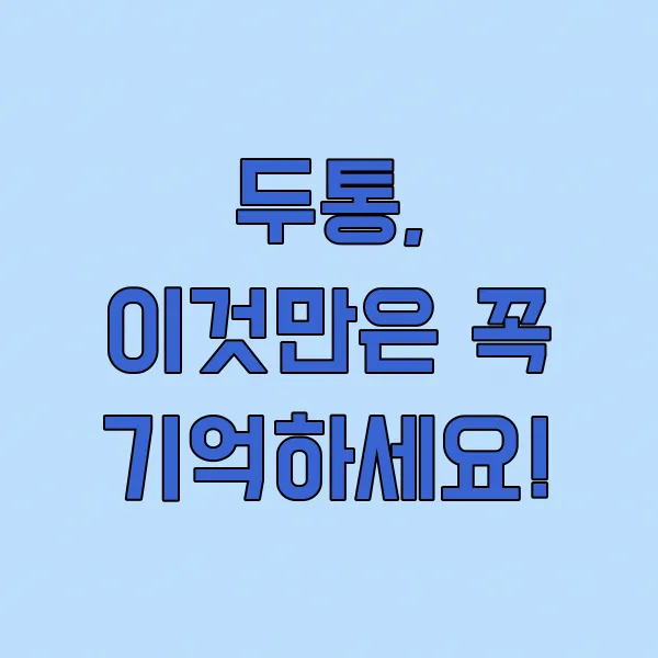 가장 중요한 것은 두통의 원인을 정확히 파악하는 것이에요. 저도 병원에서 몇 가지 검사를 받고 나서 제 두통의 원인이 특정 질환 때문이 아니라, 잘못된 생활 습관과 스트레스가 복합적으로 작용한 결과라는 것을 알게 되었답니다. 그래서 저는 꾸준히 스트레칭을 하고, 충분한 수면 시간을 확보하려고 노력하고 있어요. 또한, 카페인 섭취를 줄이고 물을 충분히 마시는 것도 도움이 되더라고요. 무엇보다 중요한 건, 몸이 보내는 작은 신호라도 무시하지 않고 전문가의 도움을 받는 것이랍니다! 두통이 지속된다면, 망설이지 말고 꼭 병원을 방문해보세요!